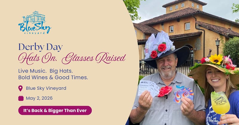 The 151st Kentucky Derby is almost here, and there’s no better place to watch the Run for the Roses than Blue Sky Vineyard, glass of Illinois wine in hand, surrounded by our signature Tuscan atmosphere.
